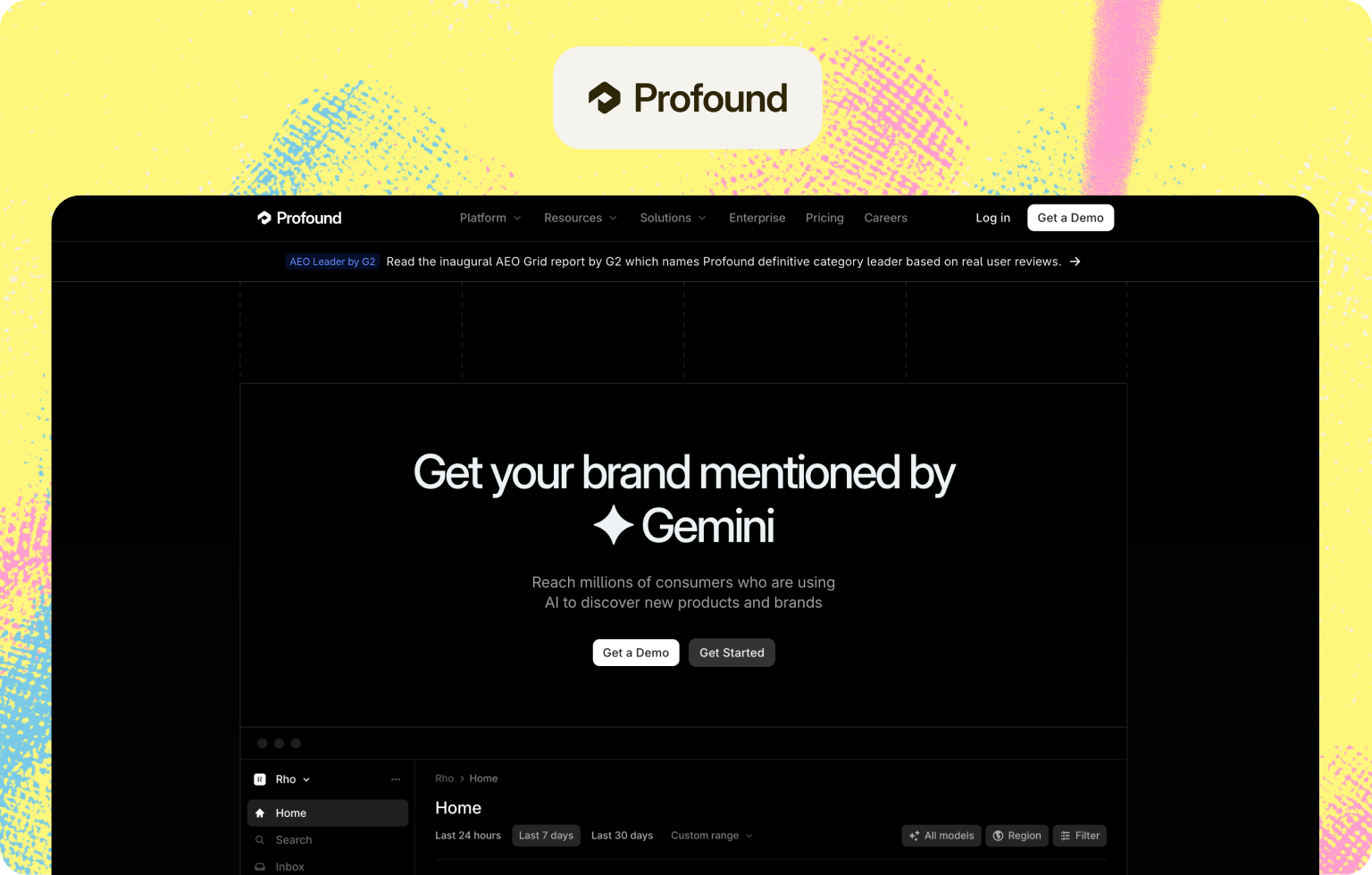 Profound is an enterprise-grade Peec AI competitor that tracks brand visibility and share of voice across AI answer engines like ChatGPT, Perplexity, and Google AI Overviews. It combines real-time monitoring with automated content creation workflows and white-glove enterprise support.