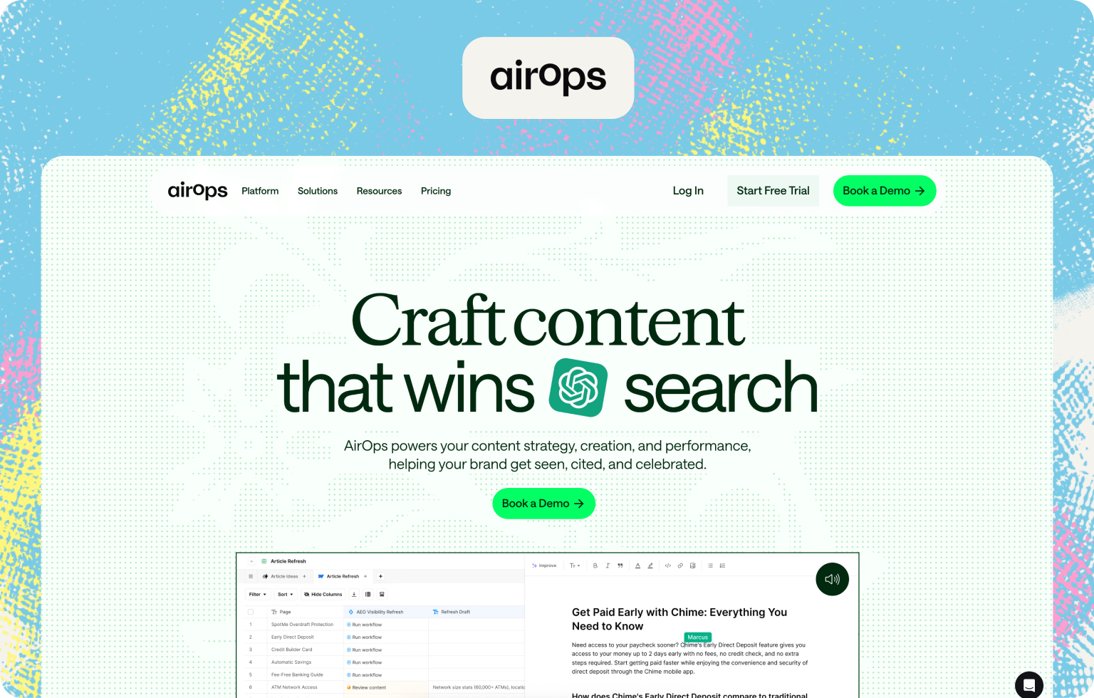 AirOps combines AI search visibility tracking across ChatGPT, Gemini, Perplexity, Google AI Overviews, and Google AI Mode with content workflow automation.