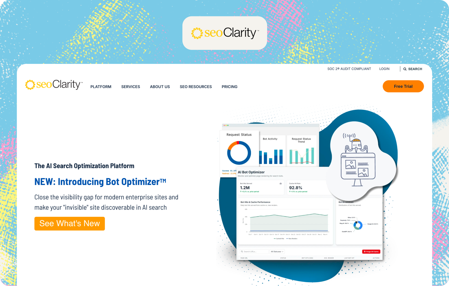 Scrunch AI is an enterprise AI visibility platform emphasizing security and governance with SOC 2 certification and real-time bot crawling feeds.