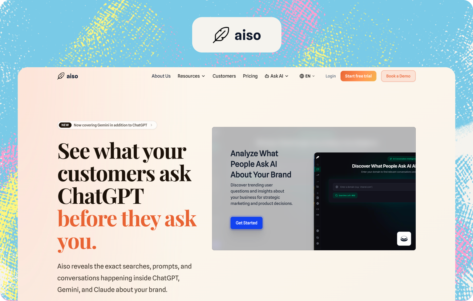 Aiso is an AI visibility platform tracking brand presence across Google AI Overviews and multiple LLM assistants.