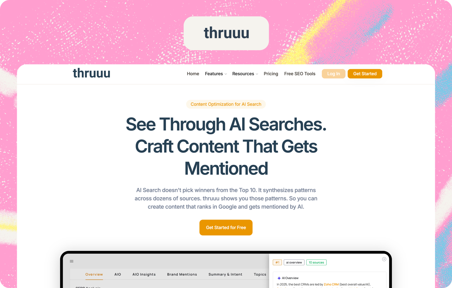 thruuu is a content-focused SERP analyzer with dedicated AI Overviews tracking and deep source analysis.