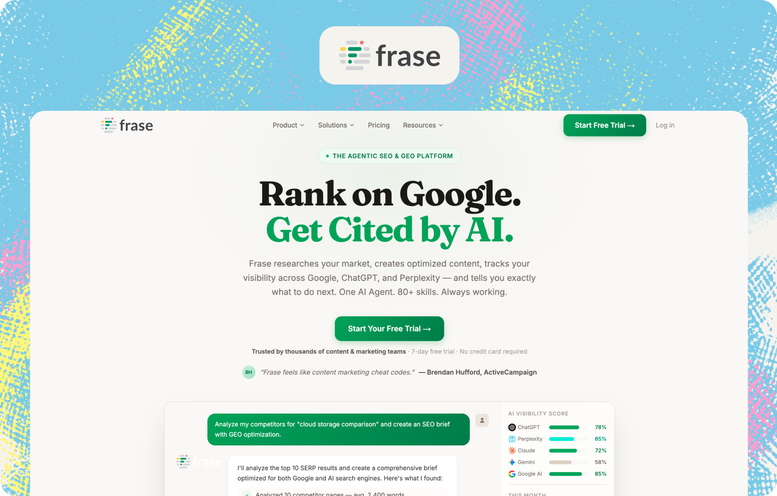 Frase operates entirely within traditional SEO strategy. Its AI writing features create operational dependency on AI to create content, rather than human-expert authorship. For teams needing AI visibility tracking or citation intelligence, Frase provides no coverage.