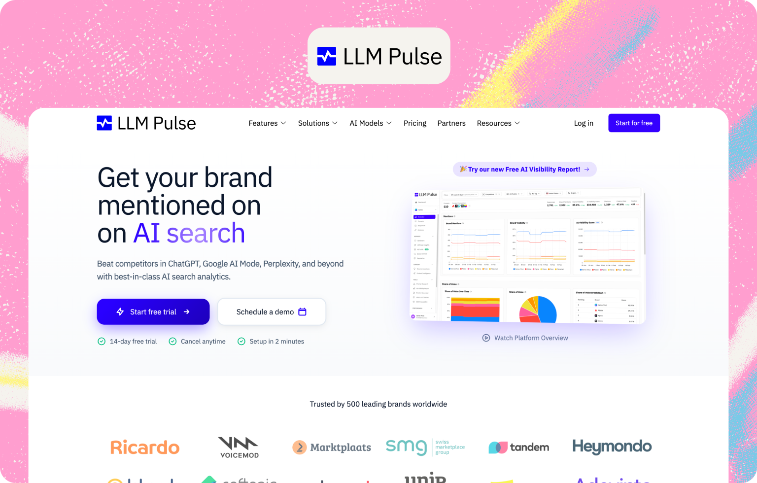 ✅ Tracks ChatGPT, Perplexity, Google AI Overviews, and Gemini as baseline