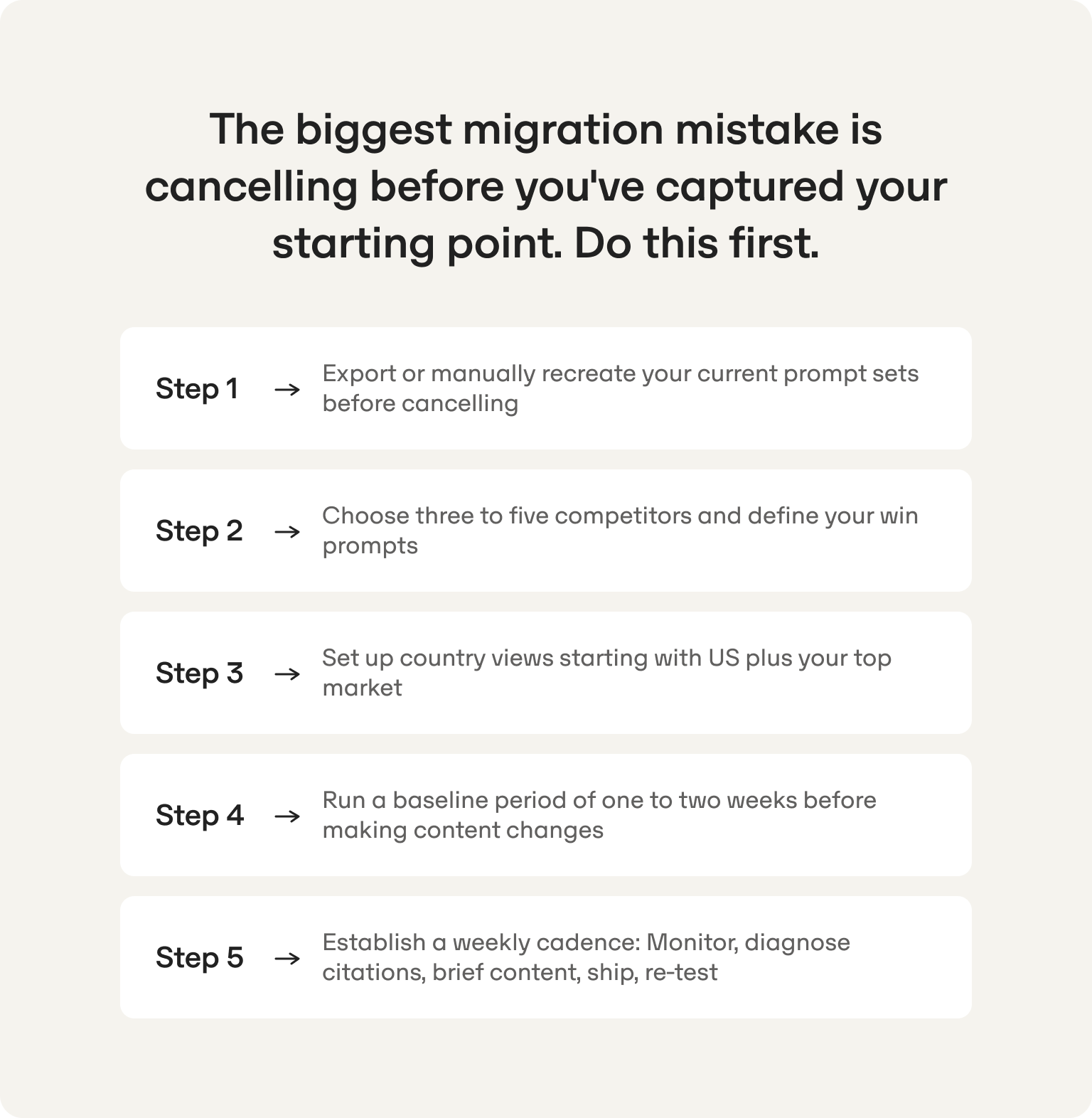 The biggest migration mistake is cancelling before you've captured your starting point. Do this first.