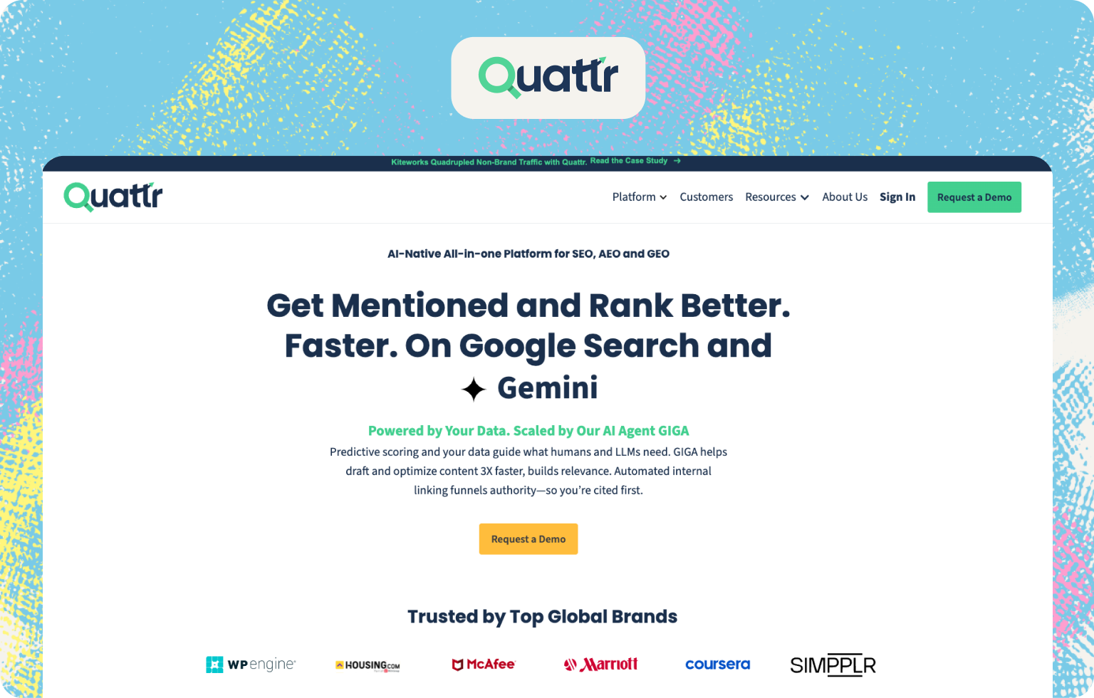 Quattr is an AI SEO platform that helps brands rank better on Google Search and get mentioned inside AI engines like ChatGPT, Claude, and Perplexity. It combines SEO reporting, content creation, internal linking, technical SEO, and AI visibility tracking.